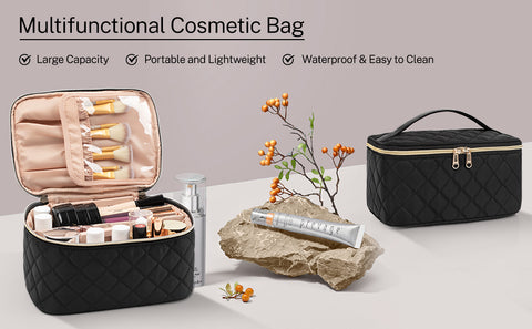 • Size: 9.4 x 6.5 x 4.7 (inch) . Portable and lightweight design makeup bag for women which makes the makeup travel bag fit for suitcases and easy to carry. Do your makeup anywhere. The smooth two-way zippers allow easy access.